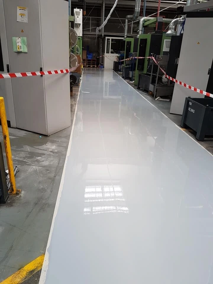 Résine Époxy : Idéale pour les sols industriels et entrepôts, elle offre une excellente résistance aux produits chimiques, aux chocs et à l’usure.